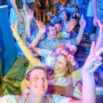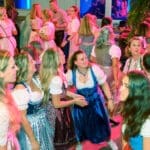 Erfahrungsgemäß trägt die große Mehrheit, dem Motto entsprechend, Dirndl und Lederhose.